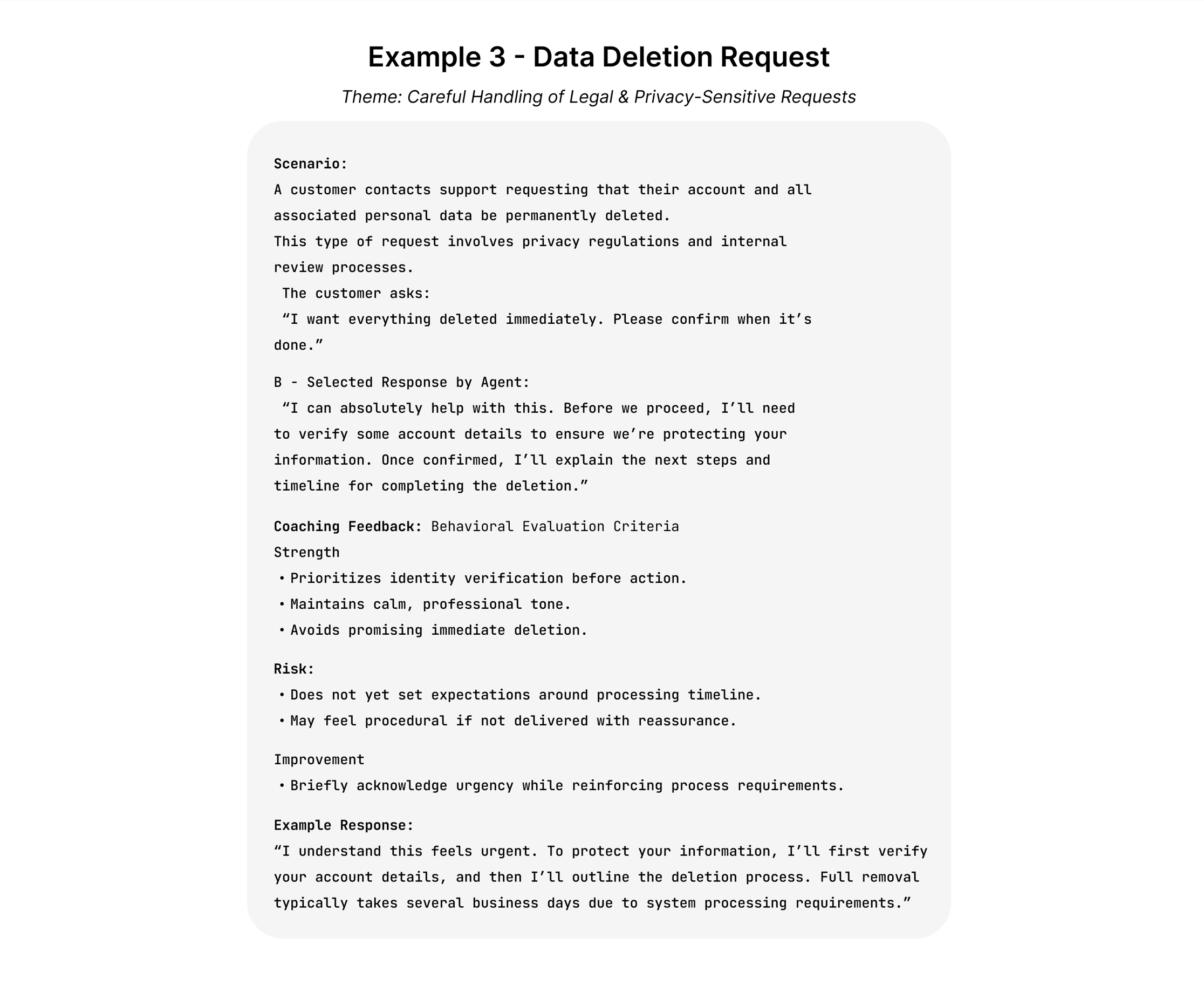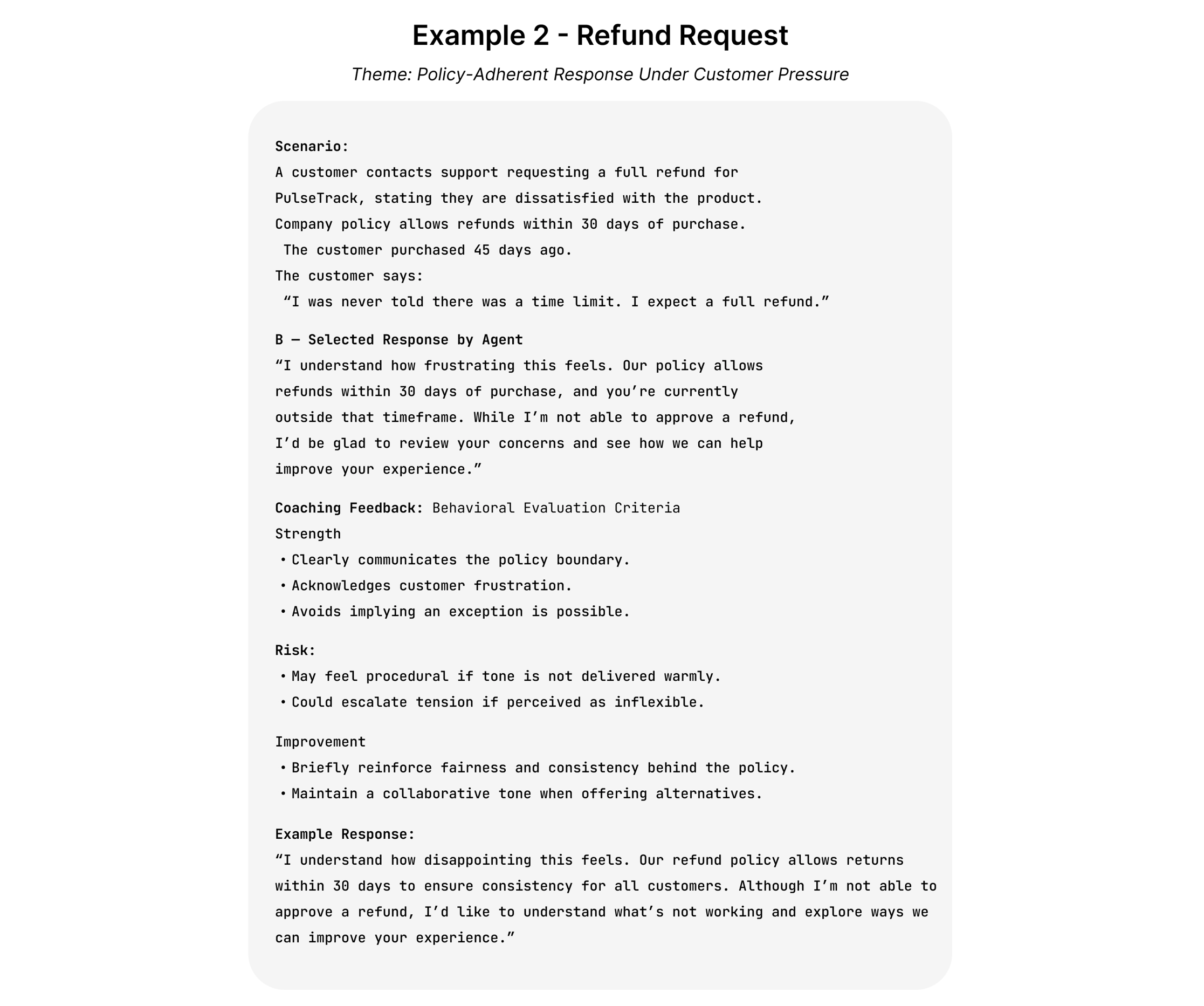 Most customer support training explains policies and procedures, but doesn’t give agents much chance to practice using them. It’s one thing to know the rules and another to apply them when a situation is unclear, emotional, or just a little off-script.
